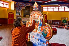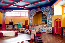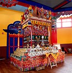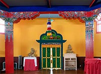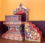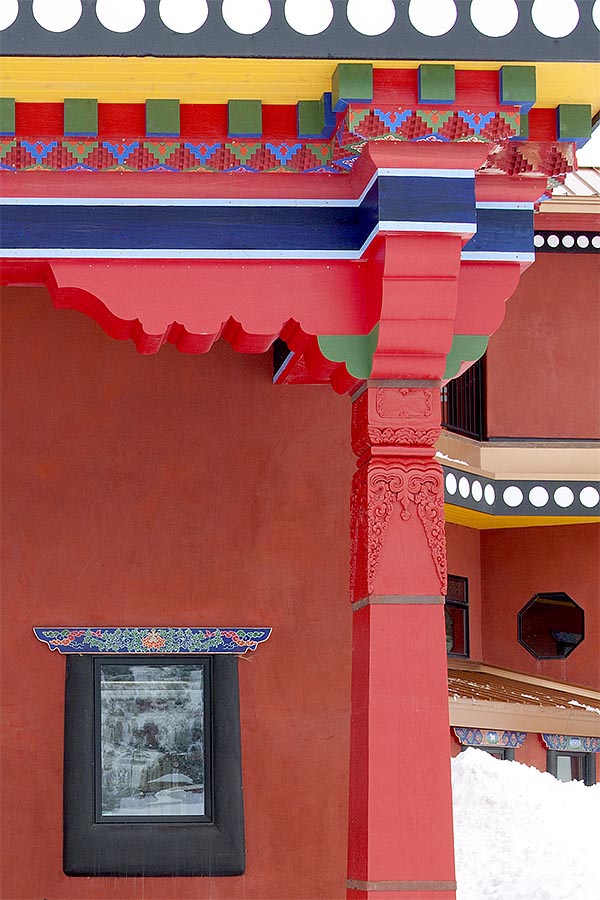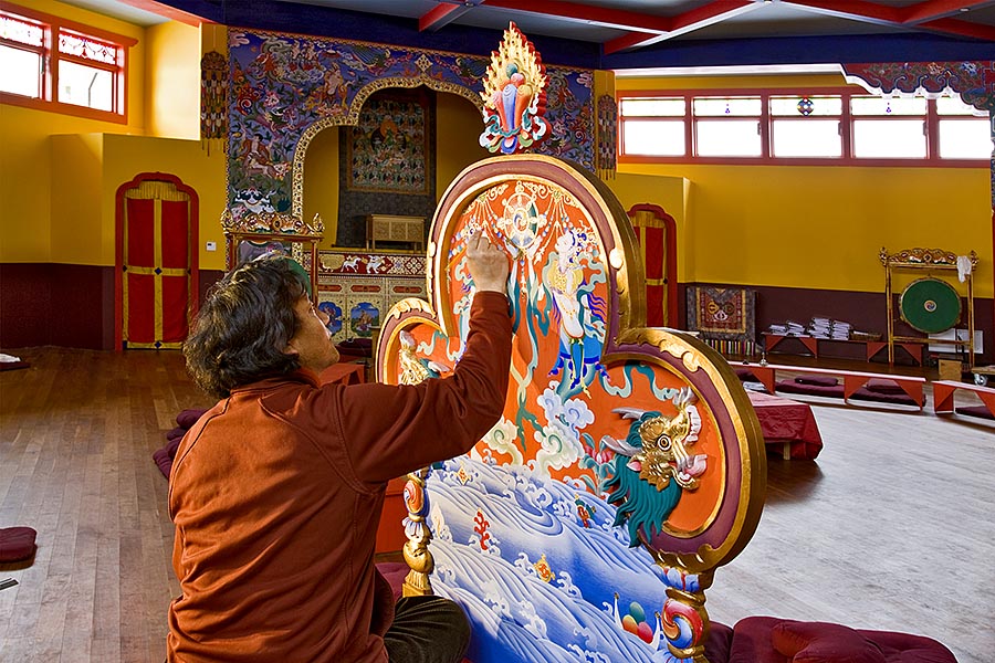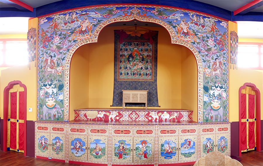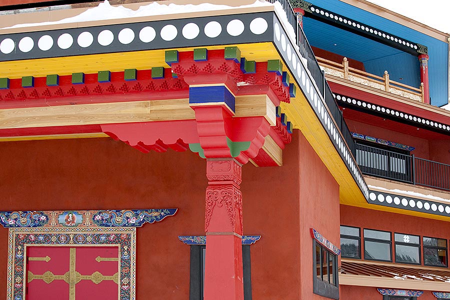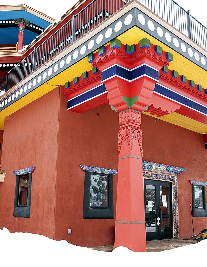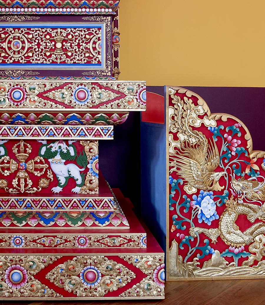 Musgrove Fine Woodworking is honored to have been commissioned to build various projects for the Tara Temple at Tara Mandala Buddhist retreat center, outside of Pagosa Springs, Colorado. Our work included architectural corbels and columns (inside and out), shrine cabinetry to display the twenty-one Tara statues, numerous stand-alone thrones and tables used in the temple, and Lama beds. We worked closely with Lama Guyrmed Raybies, the resident Tibetan artist, to design everything that was built. Many of the pieces were then meticulously hand carved by three master wood carvers from Buhtan, and painted by Lama Guyrmed in the traditional Tibetan manner.